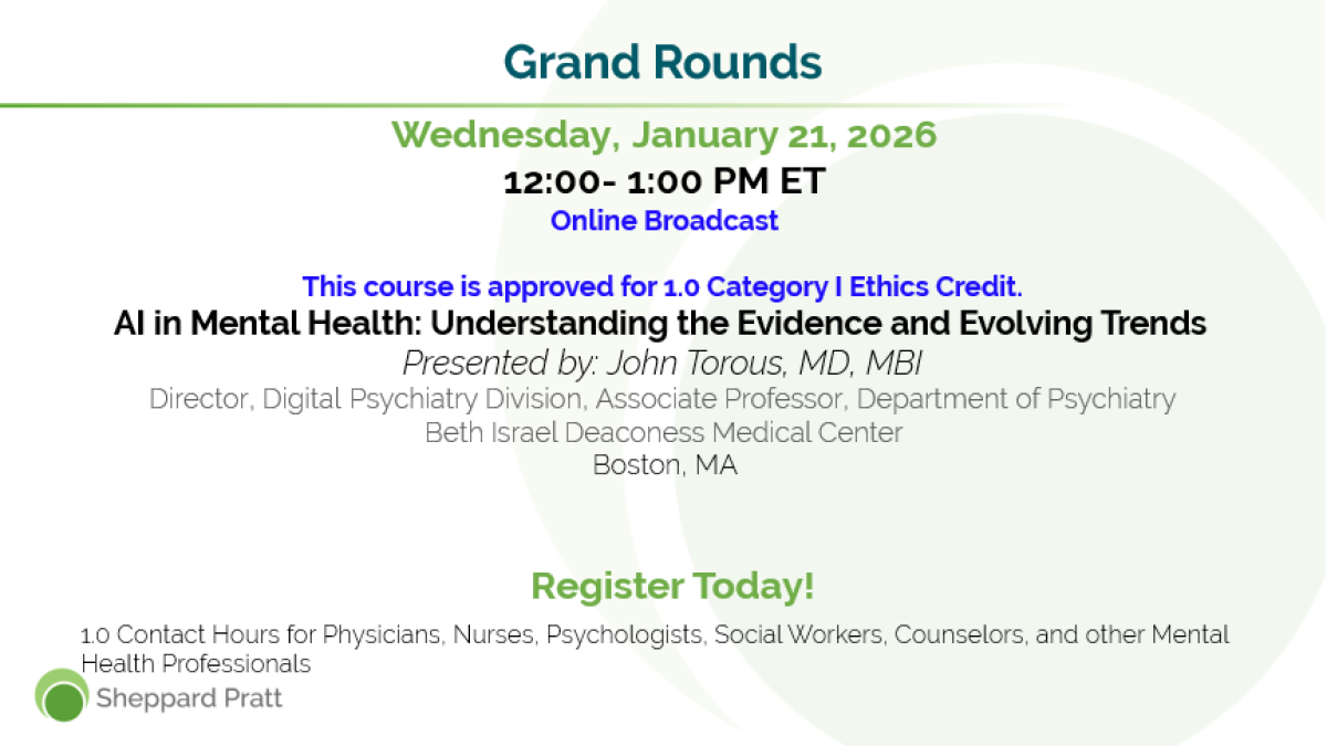 Sheppard Pratt is the largest private, nonprofit provider of mental health, substance use, developmental disability, special education, and social services in the country. We offer a robust continuing education program with dozens of educational opportunities for physicians, nurses, psychologists, social workers, and counselors each year. Use the resources below to navigate and best utilize our continuing education system.